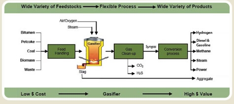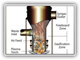 Gasification occurs when carbon containing feed stocks are exposed to extremely high temperatures(over 5000 C) in the presence of controlled supply of air to generate a wide variety of high value energy outputs. It creates hydrogen and carbon monoxide which is an energy rich gas stream. Gasification is not incineration. The gasification process is environment friendly. The gases emissions meet stringent CPCB norms and/ or practically free of dioxins and furans. Inorganic salts contain in the waste material are converted into vitrified slag which is non hazardous and can be gainfully used for various purposes like paver blocks, bricks, road making etc.
